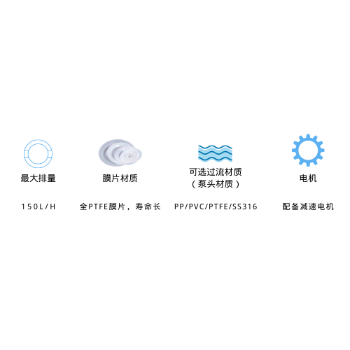 我司計量泵產品,可自行選擇泵頭材質和電機類型。 全PTFE膜片
